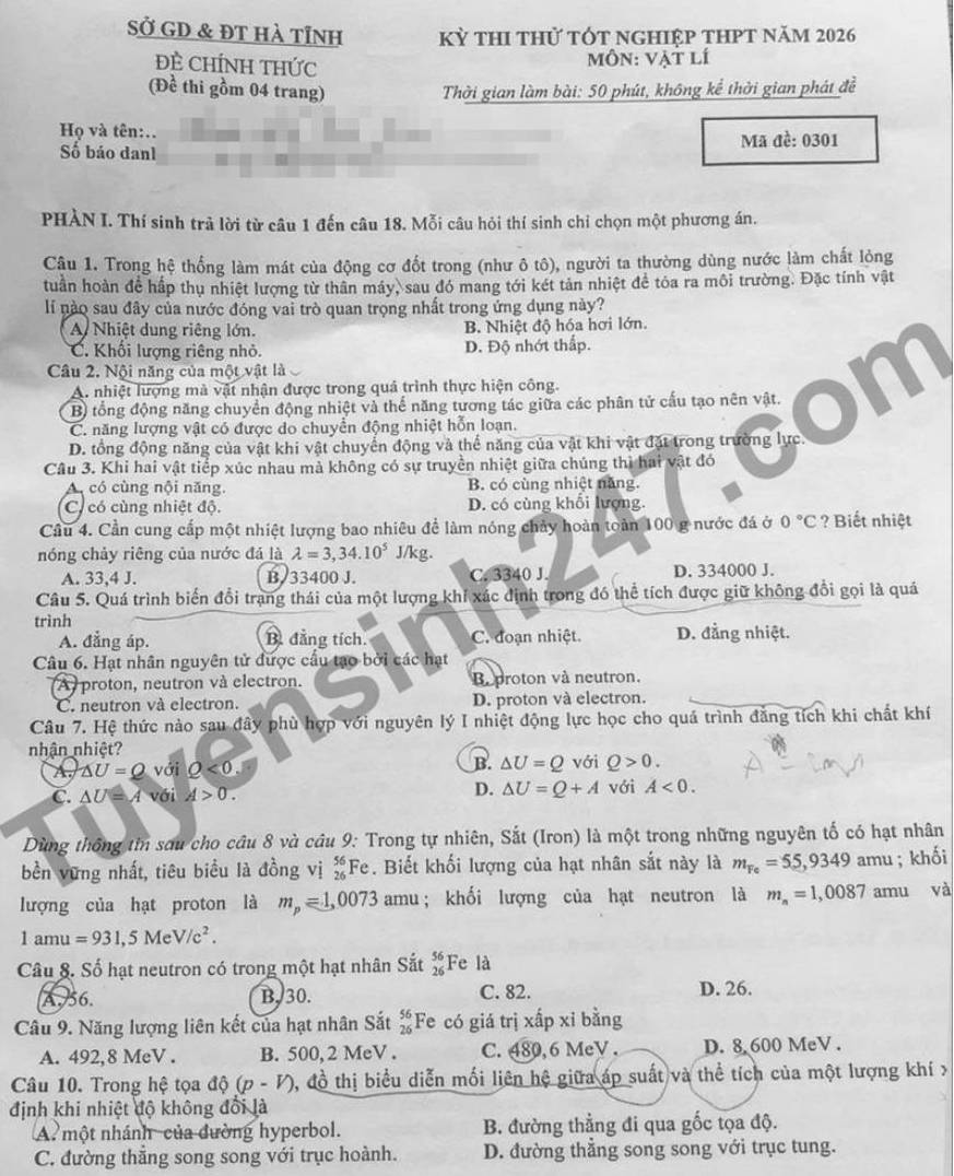 2026 Physics high school graduation mock exam - Ha Tinh Department of Education and Training