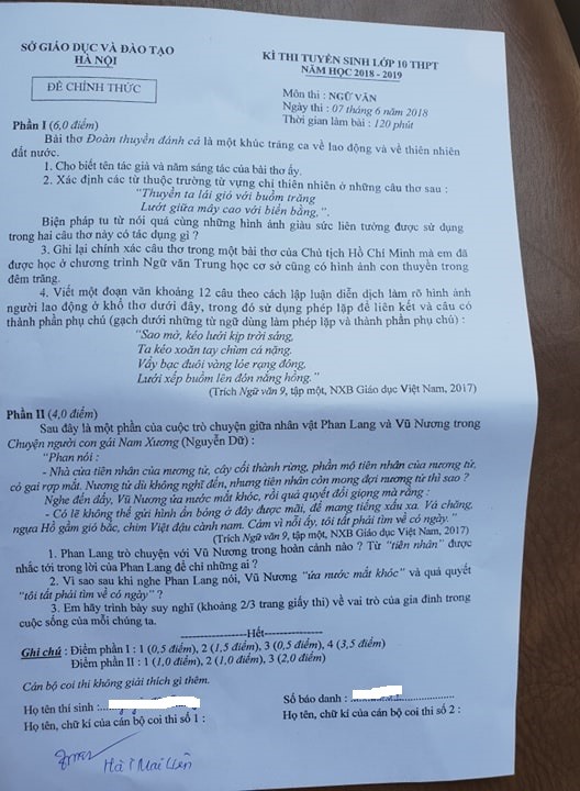Sáng nay 7.6, gần 95.000 học sinh Hà Nội dự thi lớp 10 THPT năm 2018 bước vào buổi thi đầu tiên môn Ngữ văn trong thời gian 120 phút.