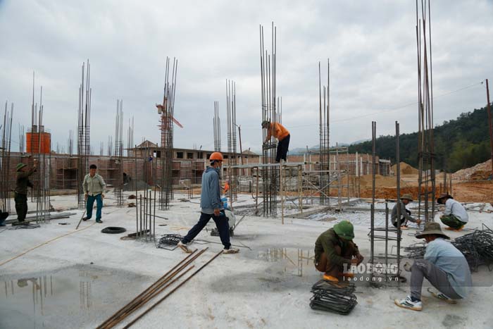 According to the reporter of Lao Dong Newspaper, at the investment project to build the Thanh Nua Inter-level Boarding School (PTNT) for Primary and Secondary School (THCS) (Thanh Nua commune, Dien Bien) in the first days of the new year, the construction pace is taking place urgently.