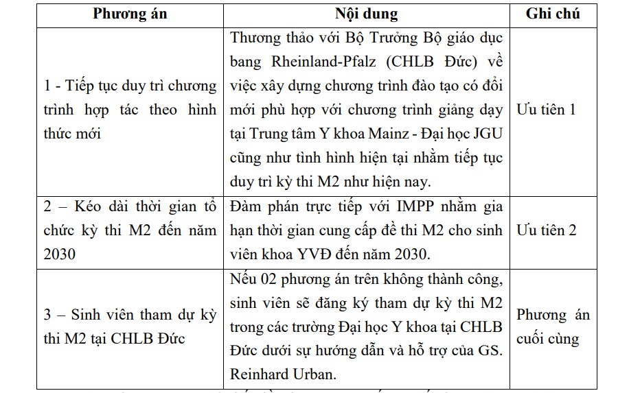 The above change in IMPP's policy has disrupted the organization of M1 and M2 exams for students of the Vietnam - Germany Faculty of Medicine, leading to the Mainz Medical Center of Johannes Gutenberg University being forced to stop the cooperation program with Pham Ngoc Thach University of Medicine from 2025. However, students in the 2023 and 2024 courses are still arranged by the school to continue studying, not forced to stop or cancel their registered training programs.