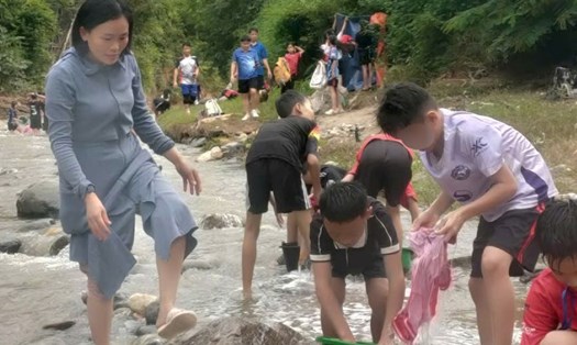 To ensure the safety and hygiene of students, every afternoon, teachers have to take hundreds of students to the Poong stream area (about 700m from school) to bathe. The incident not only causes inconvenience to students but also to teachers of the school, especially as winter approaches.
