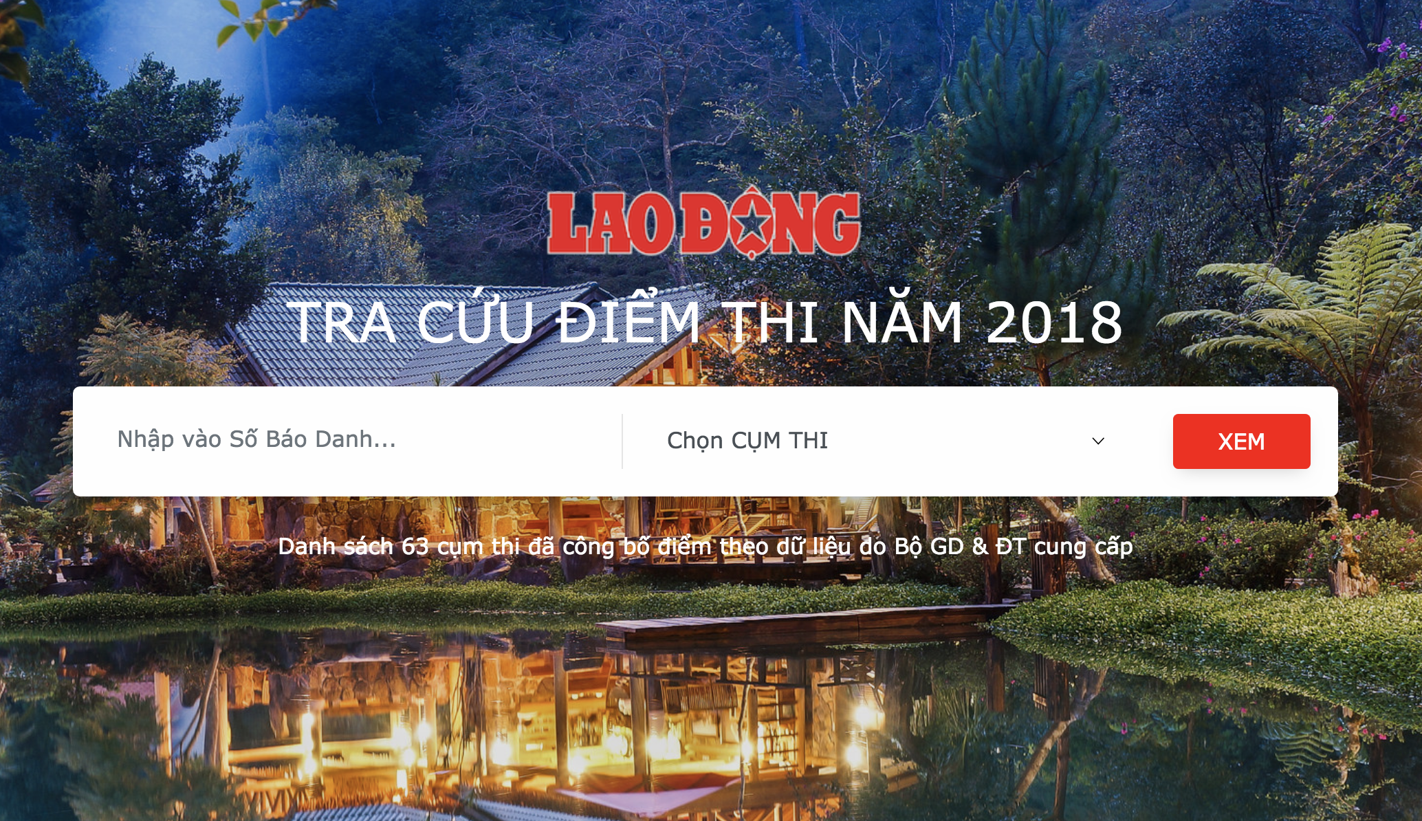 Trang Tra cứu điểm thi THPT của Báo Lao Động đã cập nhật đầy đủ cơ sở dữ liệu điểm thi chính thức từ Bộ Giáo dục Đào tạo cho 63 cụm thi toàn quốc.
