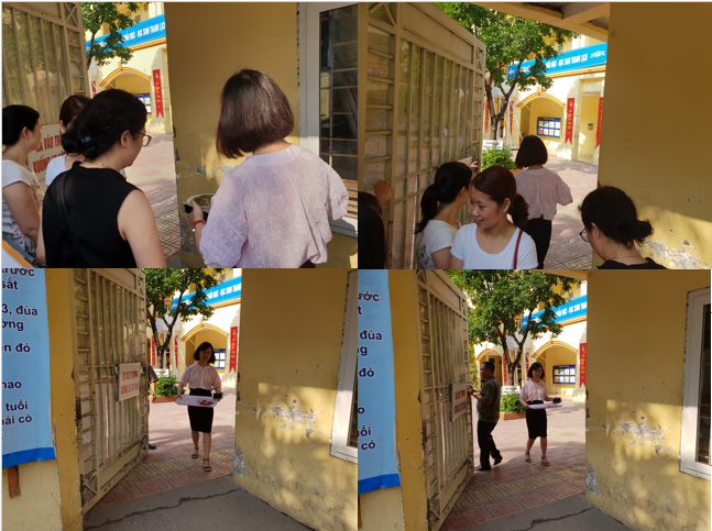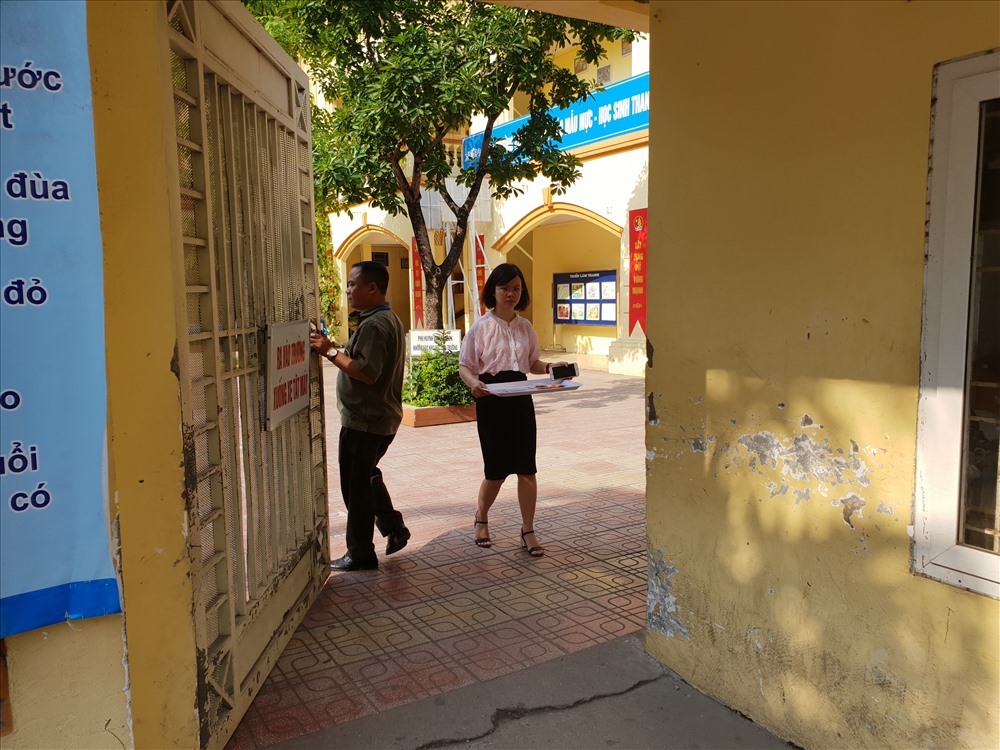 Trong buổi thi sáng 7.6 của kỳ thi tuyển sinh lớp 10, tại điểm thi Trường THCS Phan Đình Giót (Nhân Chính, Thanh Xuân, Hà Nội) xuất hiện người lạ ra vào điểm thi trong giờ thi thoải mái như đi chợ.