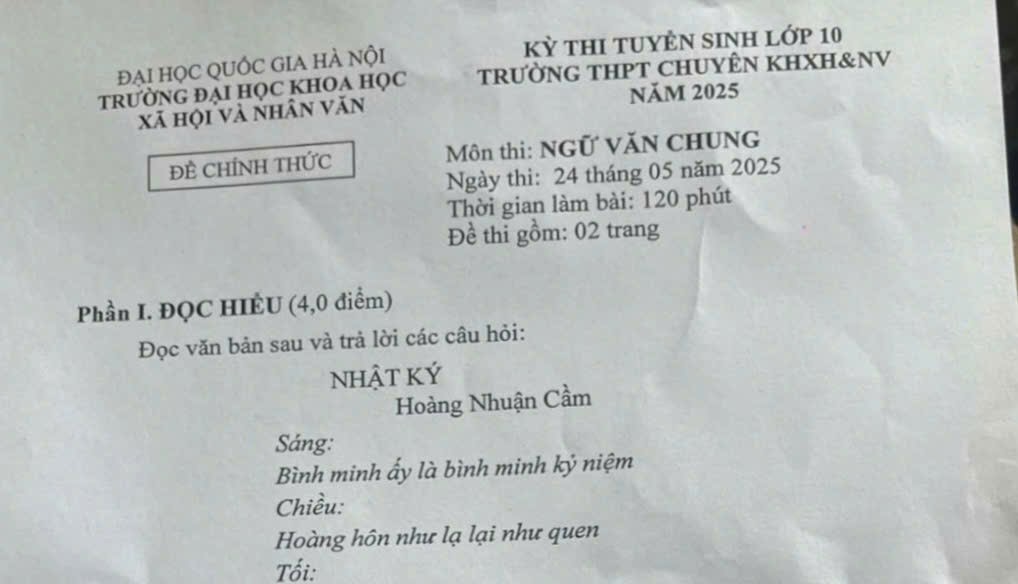 Below is the 2025 high school graduation exam in Literature for parents and students to refer to.