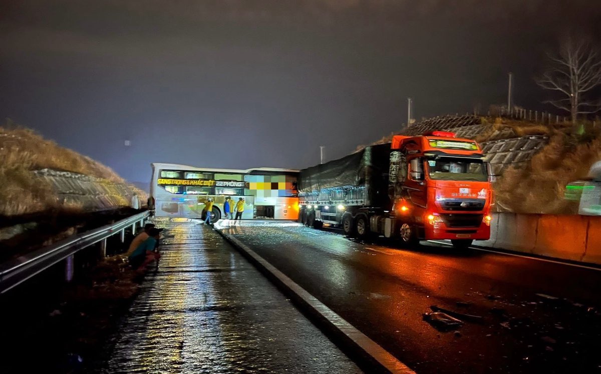 At about 3 am on February 26, at km29+300 on the Phan Thiet - Dau Giay expressway, passing through Tan Lap commune, Lam Dong province, 3 consecutive traffic collisions occurred on the South - North road section. The collision locations are about 50m apart.