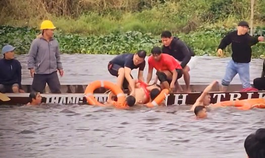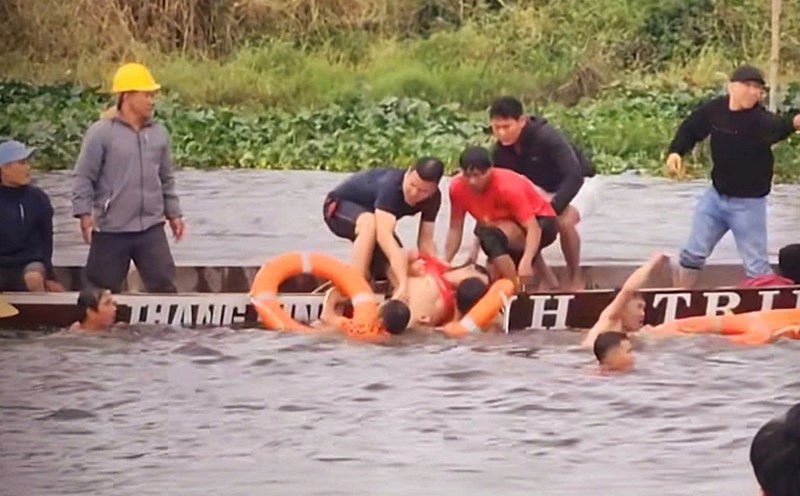 On the same afternoon, the victim Binh and his relatives visited the grave, Mr. Nguyen Dinh Nhat (37 years old, living in the same village) drowned while participating in the commune's boat race, on the morning of February 8.