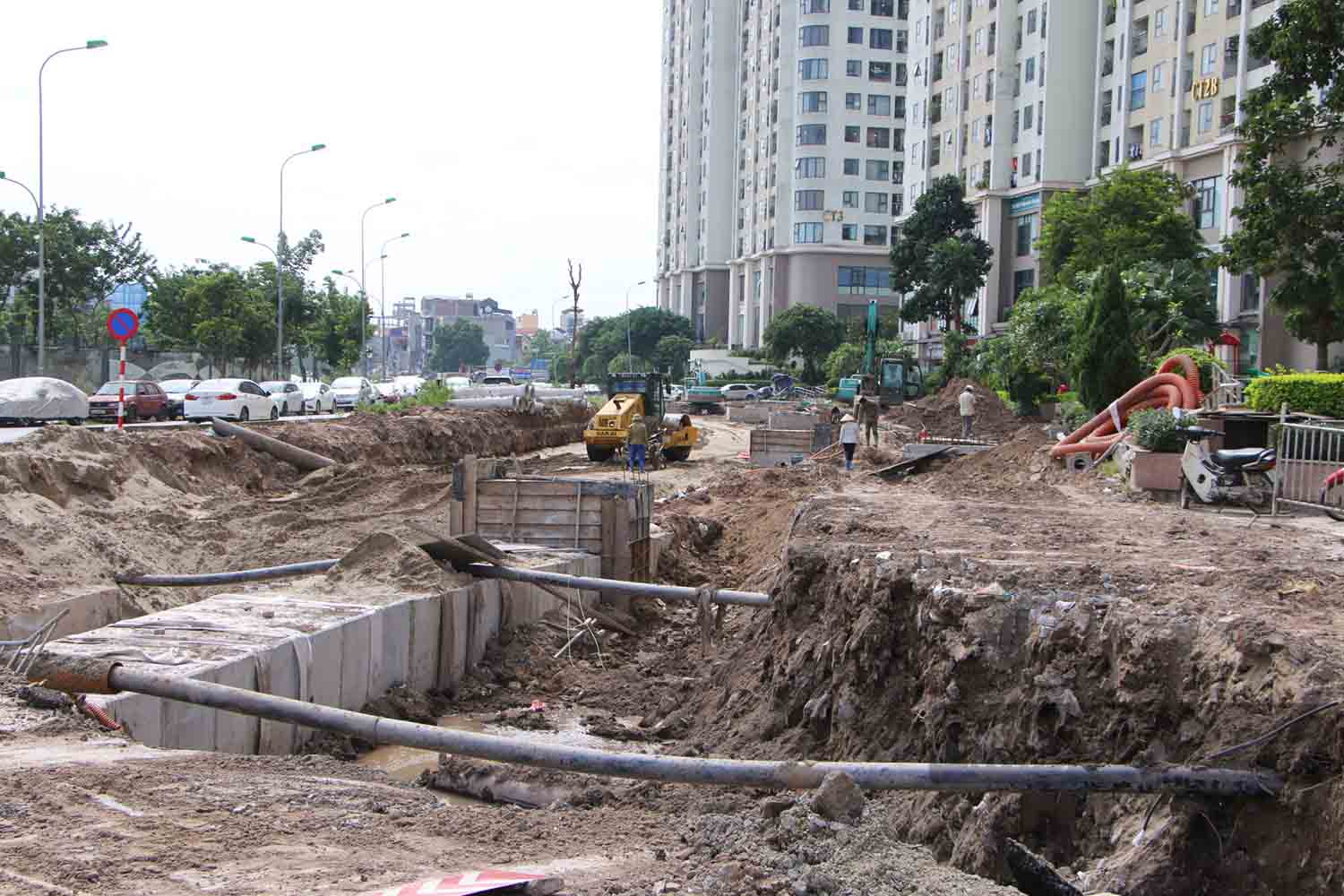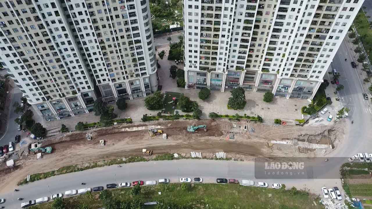 According to PV on October 29, at the Minh Khai - Vinh Tuy - Yen Duyen road project connecting from Ring Road 2.5 to Ring Road 3 (Hoang Mai ward), half of the road section from Gamuda urban area adjacent to Ring Road 3 to Hoang Mai district housing area, nearly 1km long, is under construction of the foundation and underground technical infrastructure.