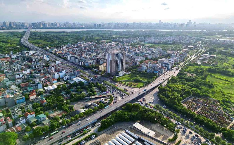 The project has a length of 743.6 m, after completion will have a cross section of 30m, including 4 motor vehicle lanes and 1 rudimentary vehicle lane on the west side (right side, 3 m wide), 1 lane East side (left, 5.5 m wide).