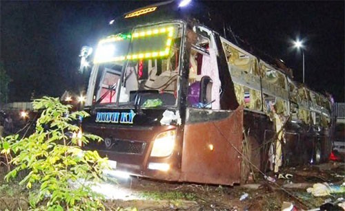 Lật xe khách trong đêm, hai mẹ con tử vong, 17 người khác bị thương