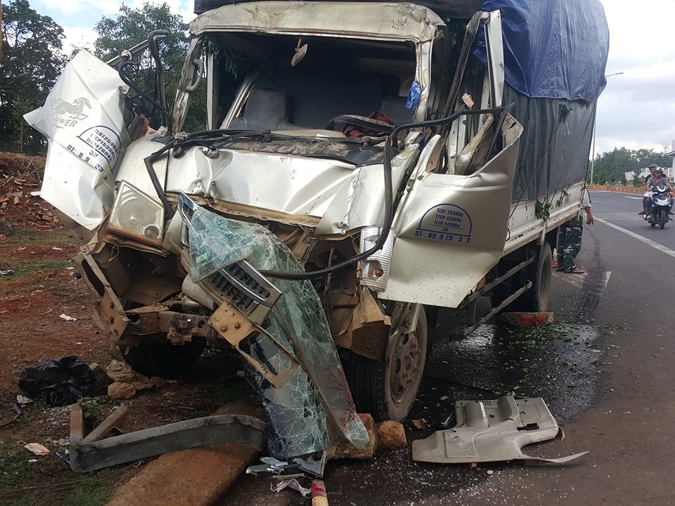 Xe tải "húc" xe ben trên đường tránh, 2 người bị thương nặng