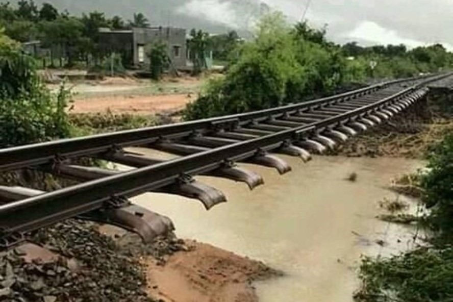 Đường sắt thông tuyến sau nhiều giờ ngập nước, xói lở đường ray vì bão số 9