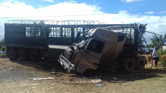Khoảng 10h sáng 30.11, tại km 1710 +100, trên đường Hồ Chí Minh (thuộc địa phận xã Ea So, huyện Ea Hleo, tỉnh Đắk Lắk), một vụ tai nạn nghiêm trọng xảy ra khiến đầu kéo chở theo một trụ điện gió lật ngang giữa đường.