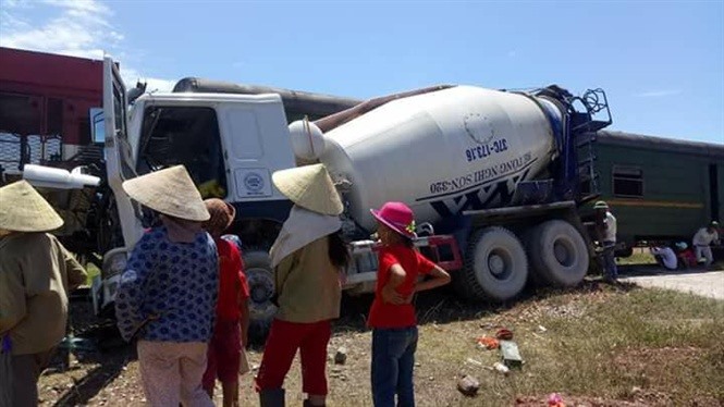 Tàu hỏa đâm văng xe bồn chở bê tông vượt đường ngang không quan sát
