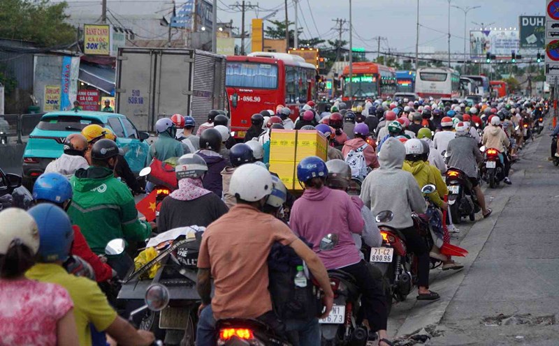 HCMC - Dong Dong forged people to return to HCMC to work after the holiday, the section passing National Highway 1 (Binh Chanh District) was crowded with vehicles, moving slowly.