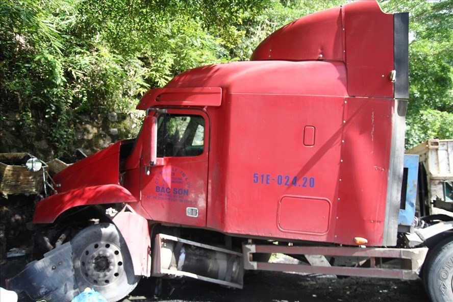 Xe container tông xe tải trên đèo Bảo Lộc, hai tài xế nhập viện