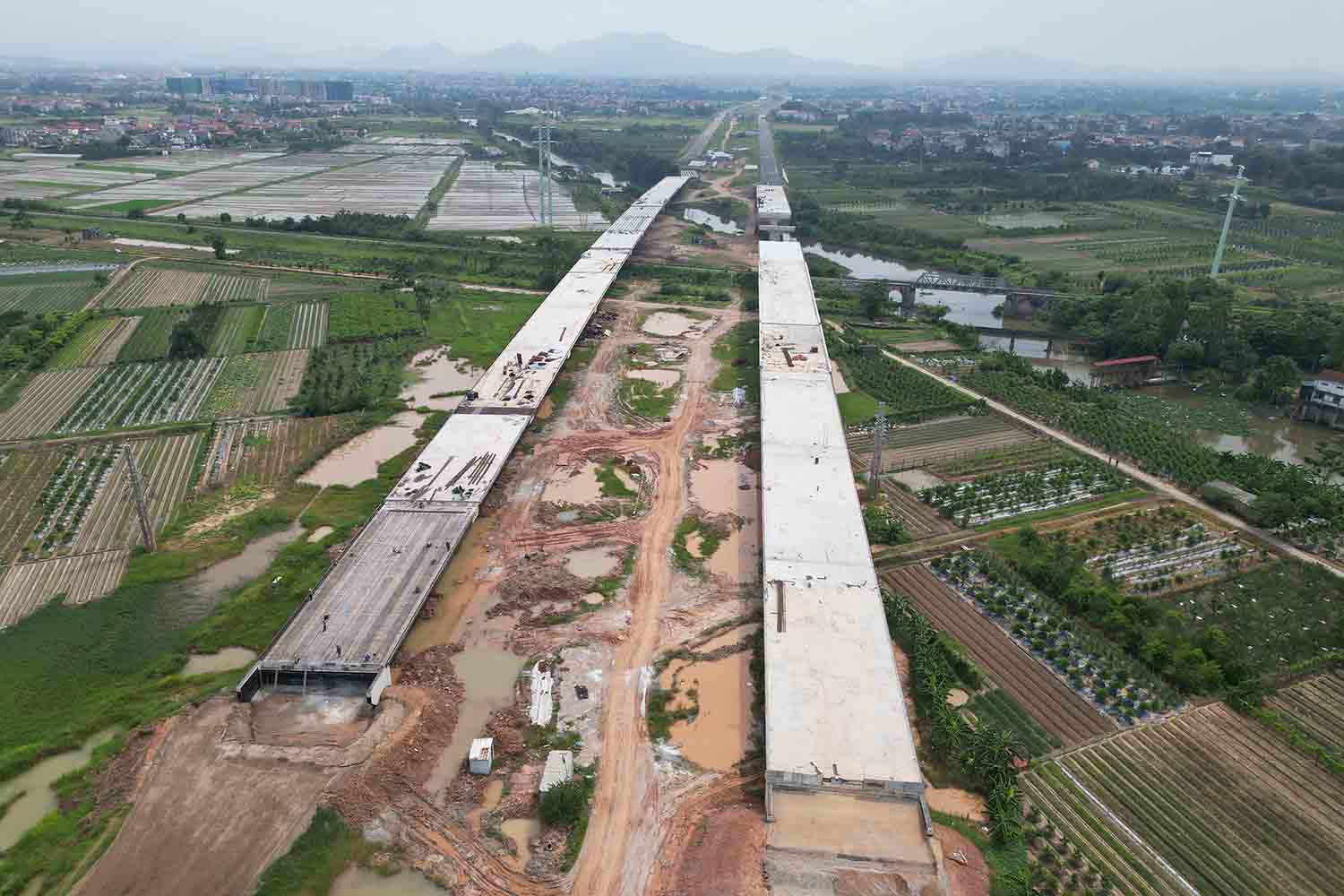 Hanoi - The railway overpass under package 8 of Ring Road 4 has taken shape, and is expected to be completed in sync with the parallel road in the near future.