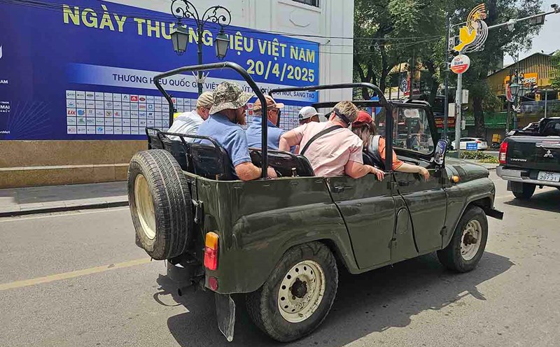 Hanoi - UAZ, Jeep cars ... converted, carrying tourists operating on the streets, there are many risks of traffic safety.