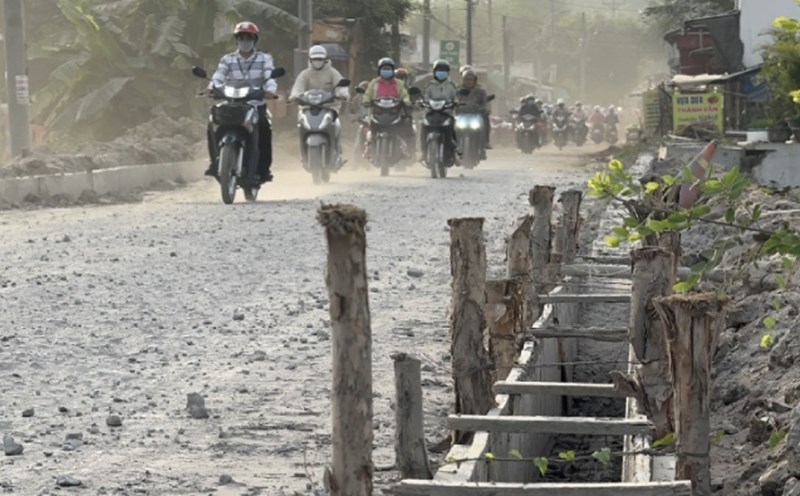 Vinh Long - The about 1.4km long road connecting Long Ho town with Loc Hoa bridge is a nightmare for people, especially the workers.