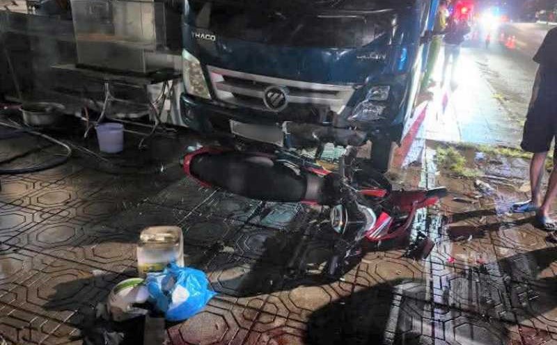 Motorcycle crashed into a truck parked on the sidewalk in Lam Dong, 2 young men died