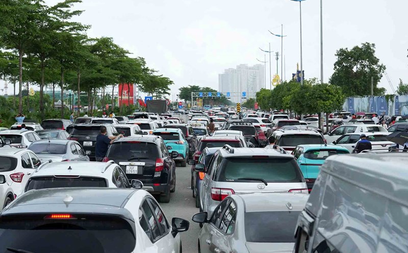 Hanoi - Thousands of vehicles lined up on the road leading to the National Exhibition Center, causing local congestion.