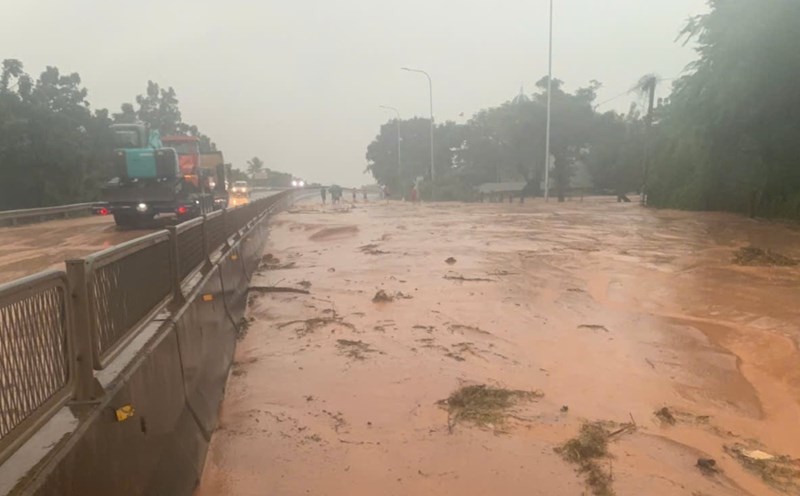 Heavy rain, red sand flood floods on National Highway 1 in Lam Dong, causing traffic jams