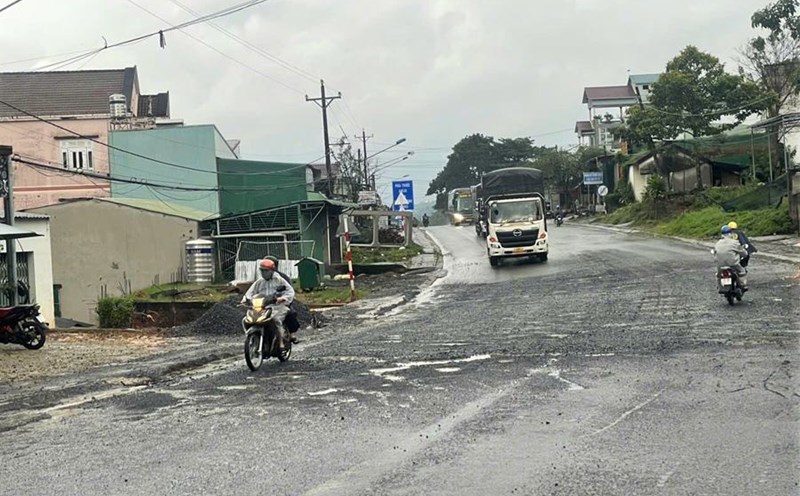 Lam Dong - Many locations on Bao Loc Pass are peeling, with many "potholes" appearing, posing a potential danger to people and vehicles participating in traffic.