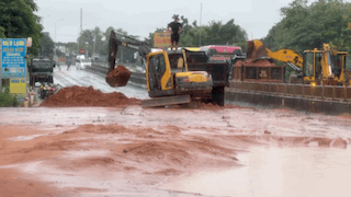 Many machines quickly cleared red sand and poured into National Highway 1, causing traffic congestion