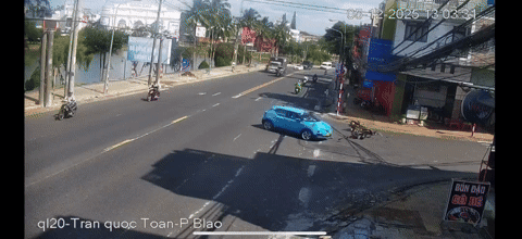 Car lost control and crashed into a series of motorbikes at Giang Vo - Lang Ha intersection