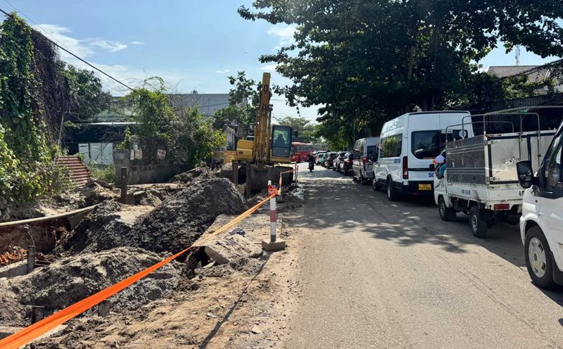 Lam Dong - During rush hour, the high traffic volume combined with construction works caused the road to Mui Ne tourist area to be constantly congested, cars lined up in long lines.
