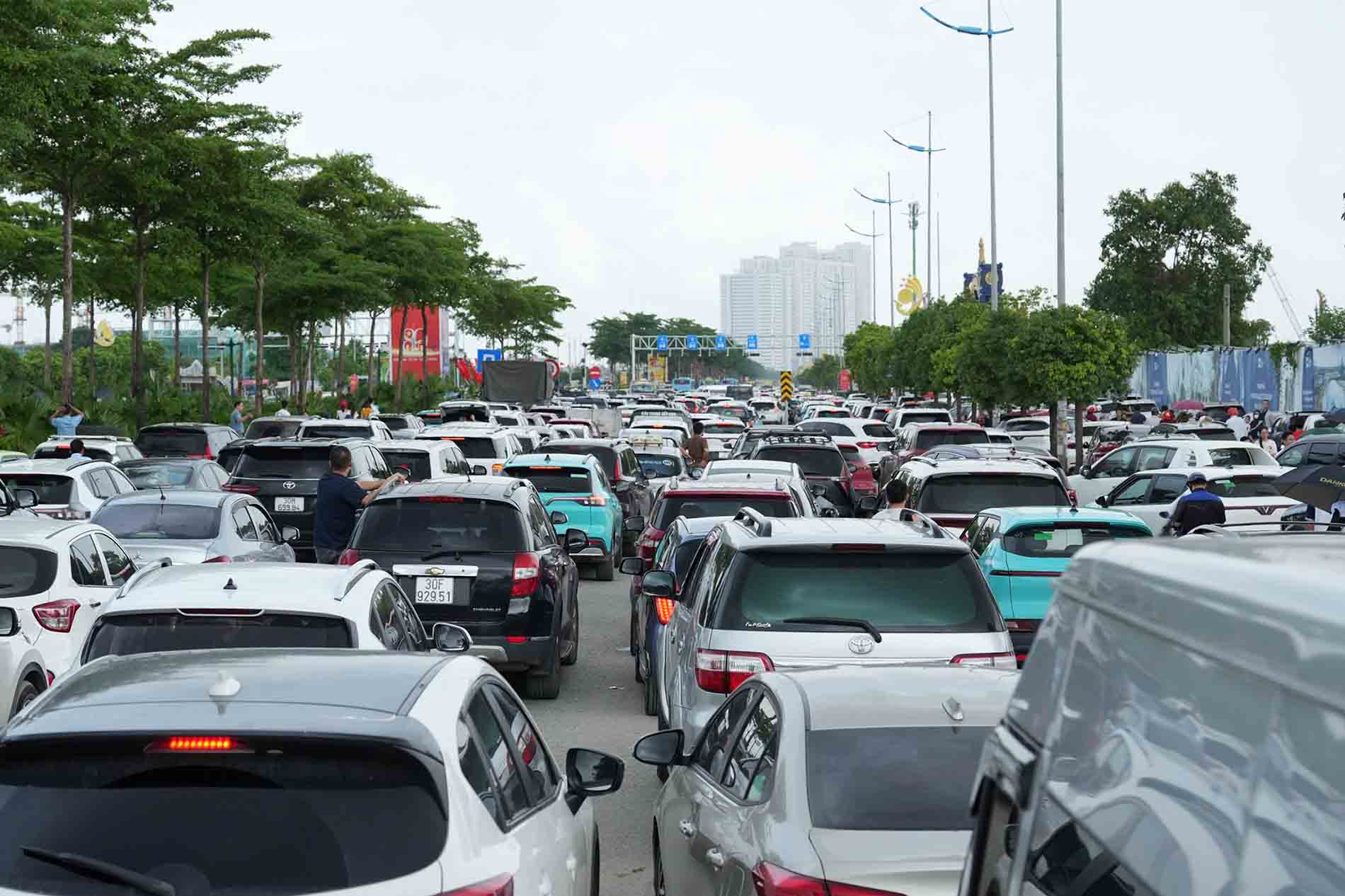 Hanoi - Thousands of vehicles lined up on the road leading to the National Exhibition Center, causing local congestion.