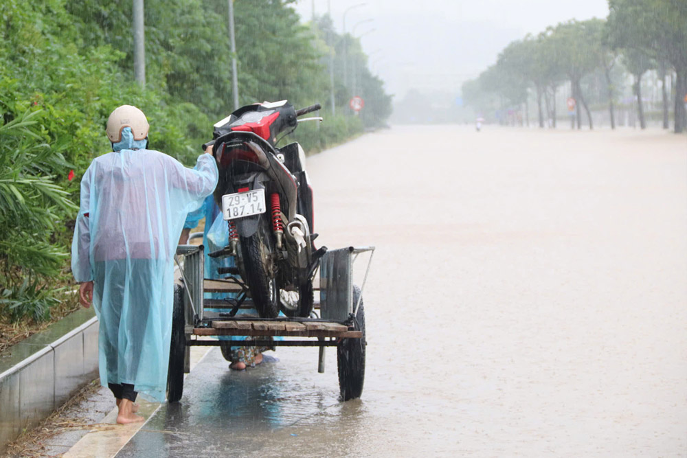 Thang Long Avenue is flooded, the service of pulling and pulling vehicles skyrockets to 300,000 VND/vehicle