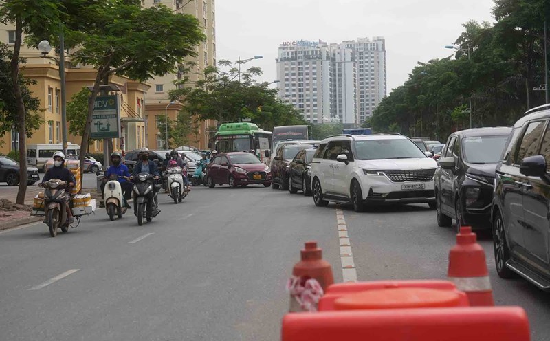Hanoi - The median strip installed on Vo Chi Cong Street causes traffic conflicts between vehicles in front of the entrance to Ciputra urban area.