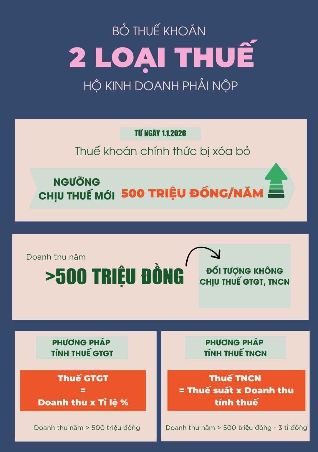 Below are 2 types of taxes that business households must pay from 2026 after abolishing contract tax and ending the collection and payment of card fees from January 1, 2026 in Clause 1, Article 7 according to Resolution No. 198/2025/QH15.