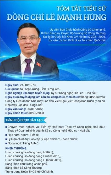 Accordingly, 100% of delegates attending the Conference to collect opinions from voters in their workplaces on the person expected to be introduced to run for National Assembly deputy of the XVI term, as well as the collective leadership meeting to expand discussion and introduce candidates for National Assembly deputy of the XVI term, unanimously voted to introduce Acting Minister of Industry and Trade Le Manh Hung to run for National Assembly deputy of the XVI term.