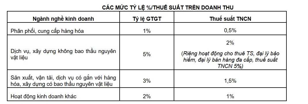 Thuế được tính bằng thuế suất nhân với phần doanh thu vượt trên 500 triệu đồng/năm.