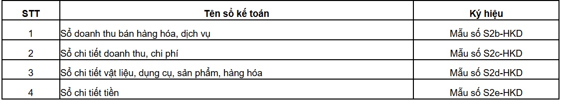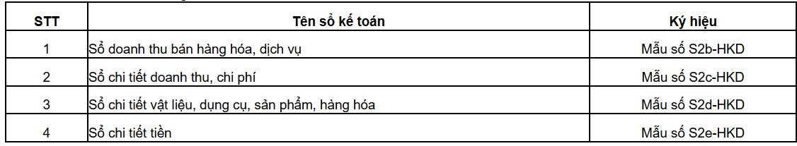 Hộ kinh doanh sử dụng sổ kế toán 04 mẫu sổ sau: