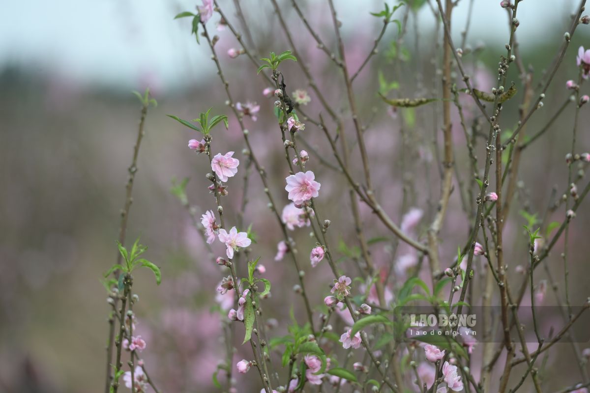 Recorded by Lao Dong Newspaper reporters at some peach gardens, many trees have bloomed brilliantly, even some trees have begun to wither their petals. According to peach growers, the main reason is that the weather this year is erratic, prolonged high temperatures cause peach buds to bloom early, although growers have applied many measures to inhibit peach blossoms.