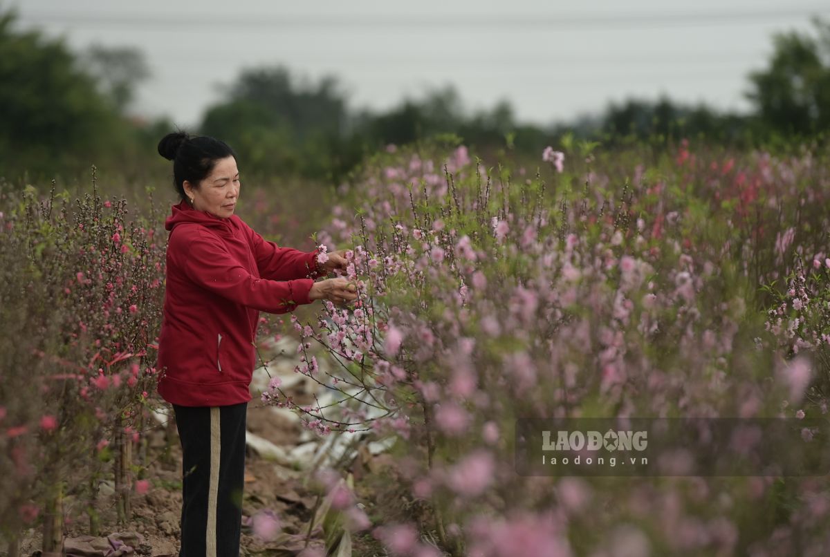 If the flowers bloom right on Tet, peach branches in my garden can be sold at prices from 150,000 - 200,000 VND/branch. Currently, to salvage some costs, I am selling 1/3 of the price, and any trees that cannot be sold must be cut down to keep the roots, serving reproduction. If peach blossoms bloom early and wither before Tet, customers will not choose to buy, considering it a loss of the whole crop. Taking care of them for a whole year is considered wasteful," Mr. Khu shared.
