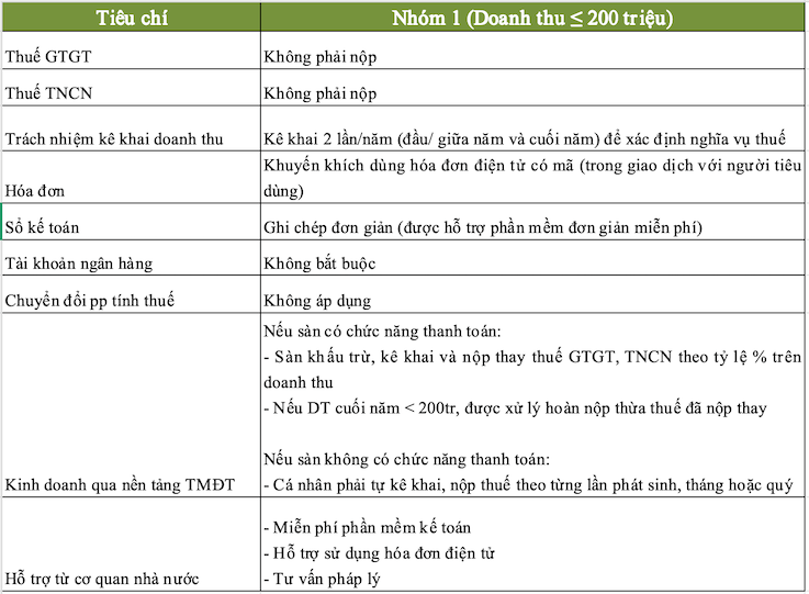 - Group 2: 200 < million Revenue ≤ 3 billion VND/year