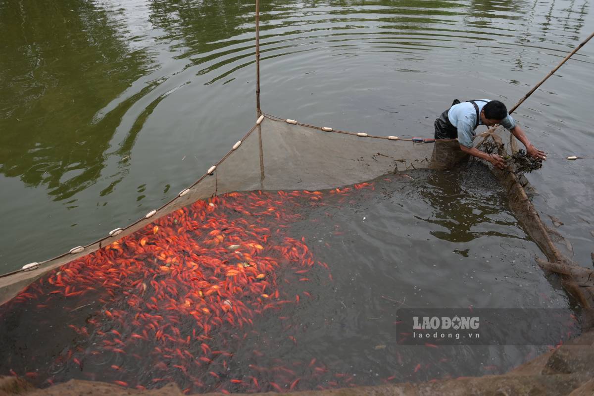 According to local people, raising red carp to serve the market right on the occasion of the Kitchen Gods will take more than half a year to take care of. To have a quality fish crop, people must prepare ponds early, choose good breeds, regularly monitor water sources, and prevent diseases for fish. In particular, fish must be cared for to have a bright red color and be healthy to be favored by the market. Fish harvesting starts from about the 15th to the 20th and 21st days of the twelfth lunar month.