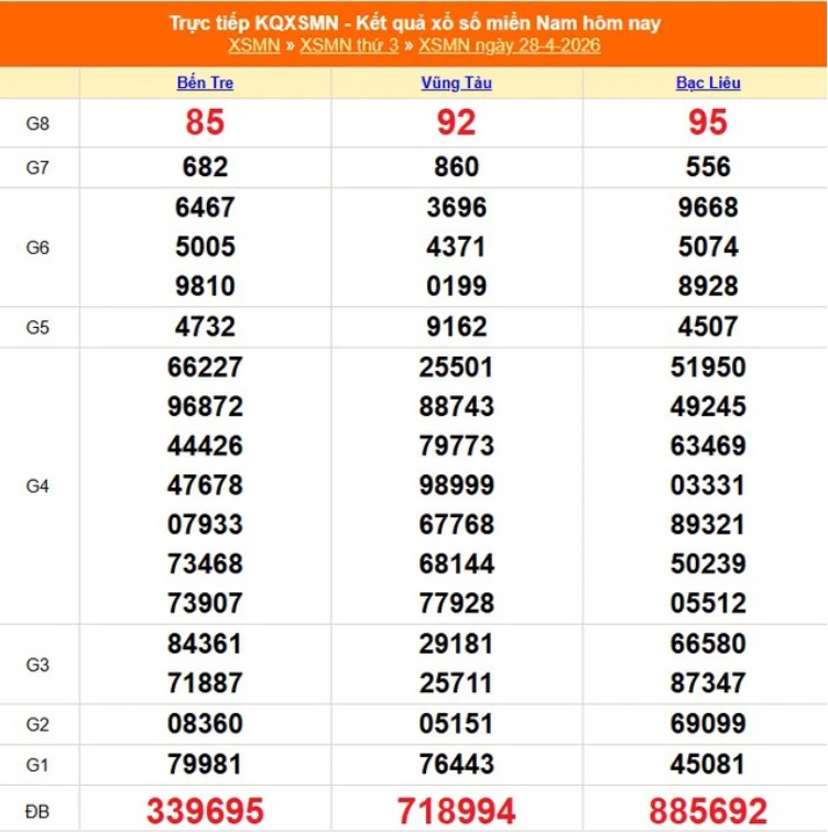 Southern lottery results, on April 28, will be updated by Lao Dong Newspaper when lottery companies announce the results at 4:15 PM.