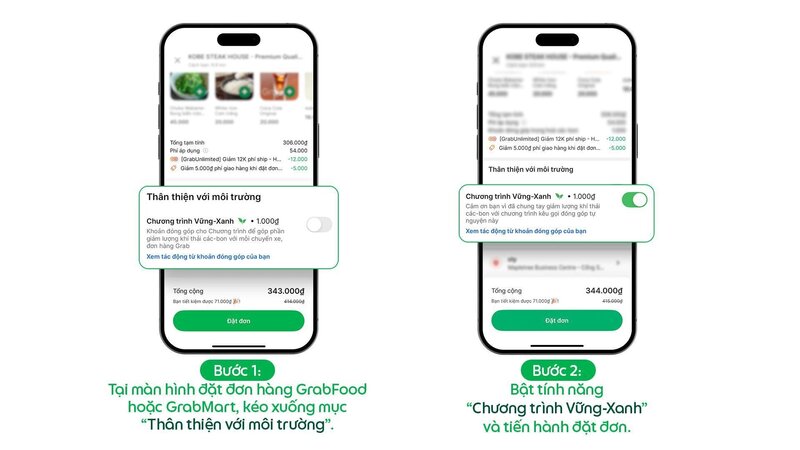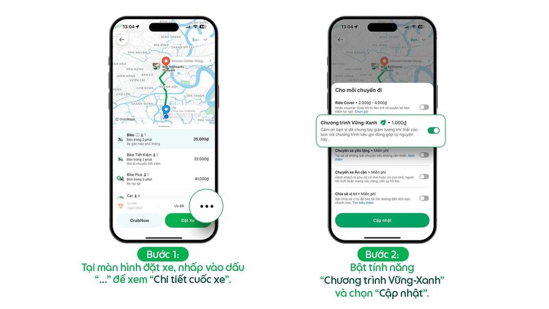 Grab users can join the program easily with just one touch in their daily Grab booking routine. Before booking the service, users can choose to activate the contribution feature for the Green Program, for only 2,000 VND per GrabCar trip, 1,000 VND per GrabBike trip or order GrabFood/GrabMart.
