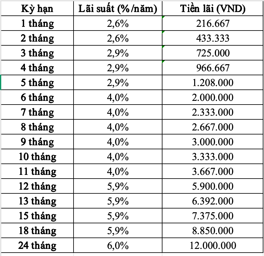 Thus, depositing 100 million VND at Agribank, customers can receive the following interest rate: