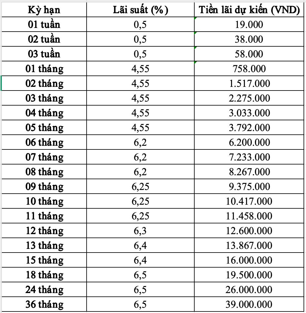 Thus, depositing 200 million VND at Bac A Bank, customers can receive the highest interest rate as follows: