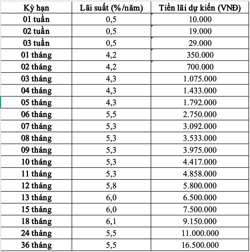 Thus, with a term of 36 months, the amount of interest received is up to 16.5 million VND.