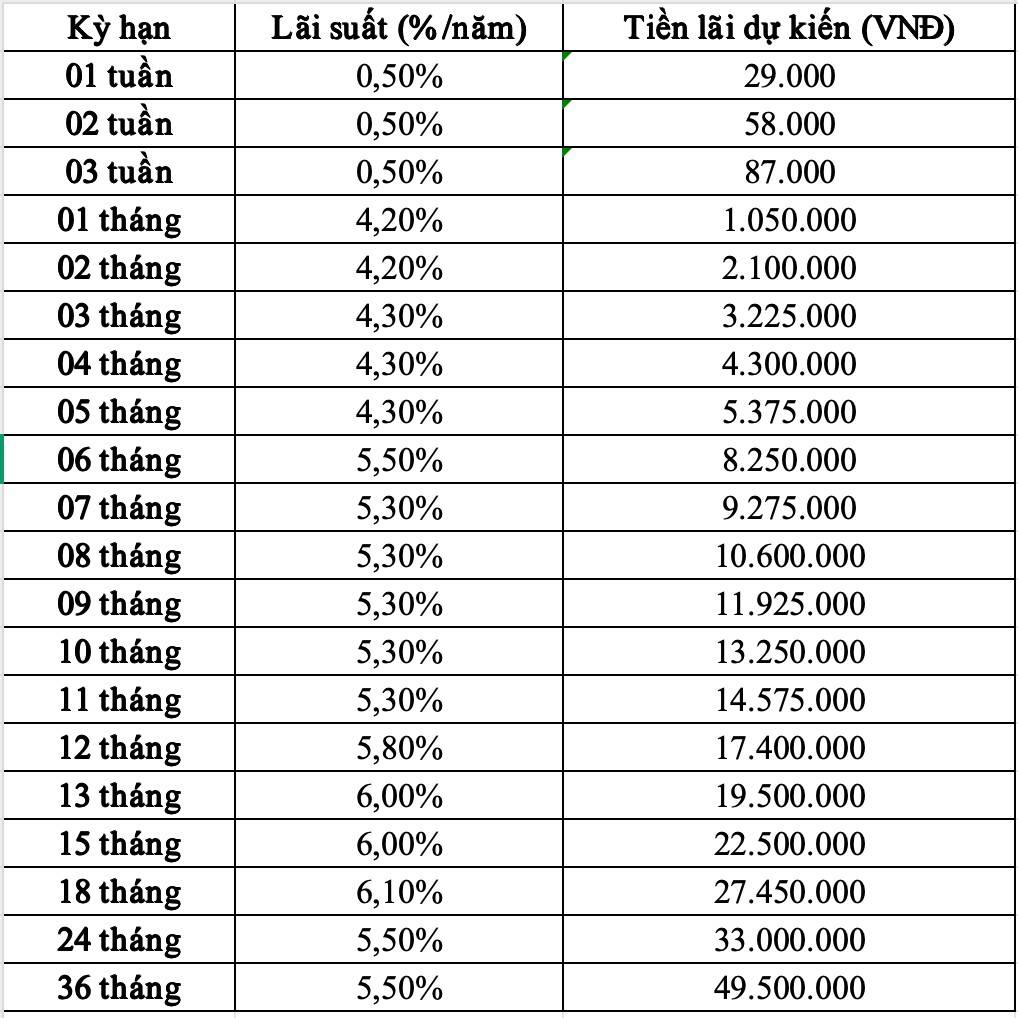 Thus, with a term of 36 months, the interest you receive is up to 49.5 million VND.
