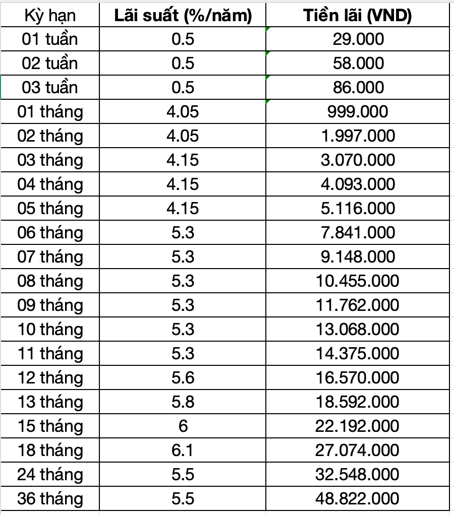 Thus, with a term of 36 months, the interest you receive is up to 48.8 million VND.