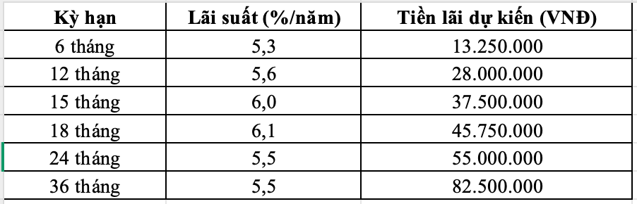 Thus, with a term of 36 months, the interest you receive is up to 82.5 million VND.
