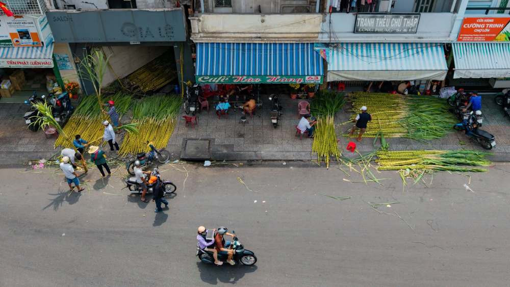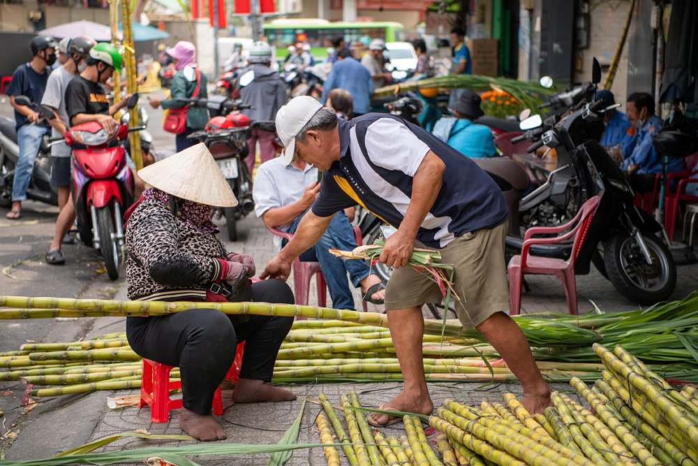 The special feature of this sugarcane market is that it only holds for about 2 days and then returns the premises on the morning of the 9th day of the first lunar month. Therefore, the number of customers flocking here increased sharply in the early afternoon of the 8th to be able to choose the most beautiful pairs of sugarcane.