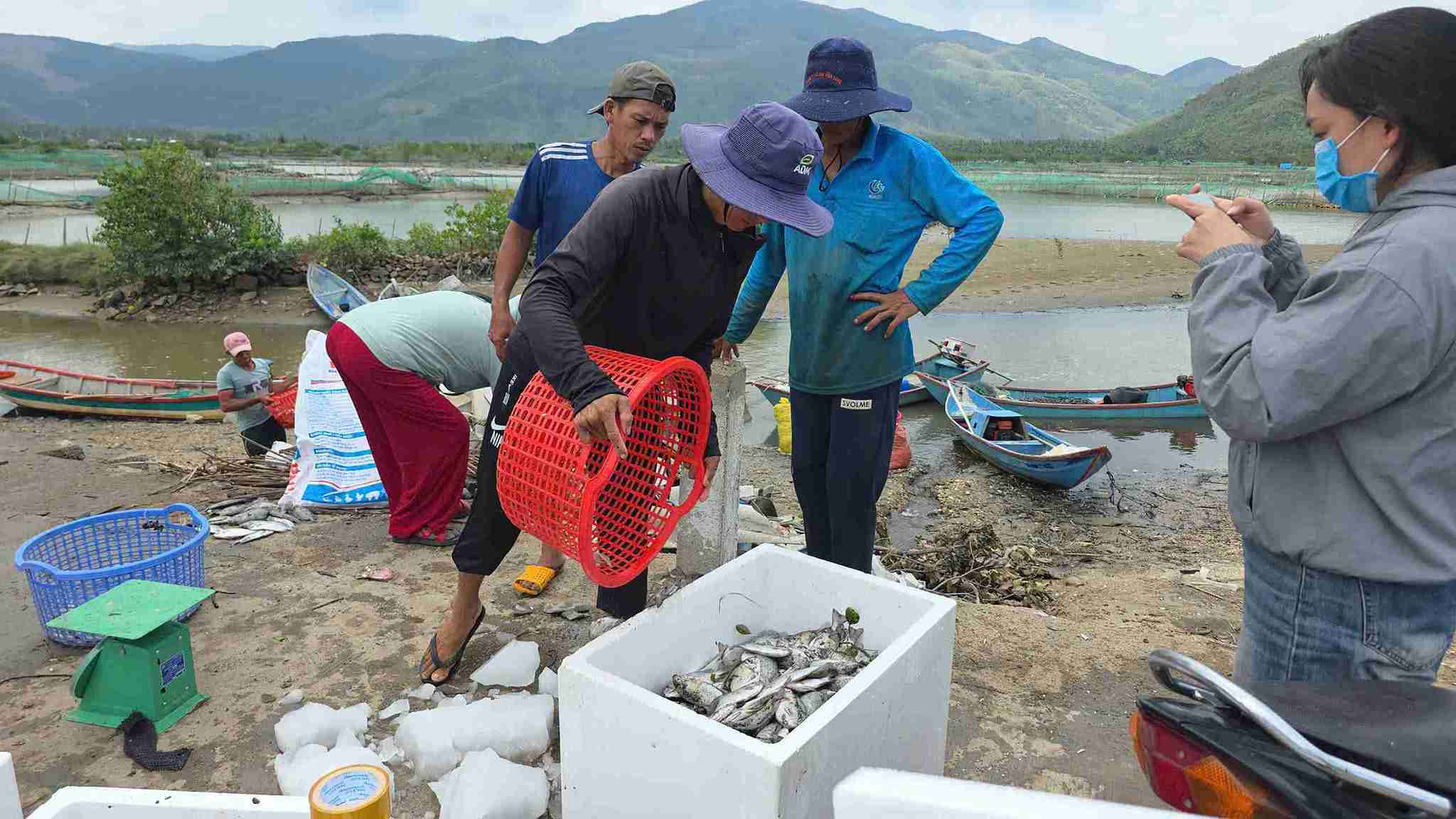 According to local people, the cause of fish deaths was due to large waves, the fish were rubbed into cages.